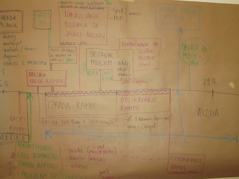 Tako smo na završnom susretu raspolagali s mnoštvom novih informacija koje smo integrirali u hodogram pripreme volonterske akcije, a bavili smo se i načelima i faktorima uspješnog timskog rada te osnovama komunikacije s medijima. Postavljanje rampe na Zavičajni muzej je planirano na dan otvorenja izložbe Marca Chagalla, 29.4. travnja, te je tako radno ime akcije "Chagall za sve". Naravno, uz osiguranje pristupa osobama s invaliditetom na izložbu, istom se akcijom i ukazuje na problem postojanja arhitektonskih barijera drugdje u Rovinju.