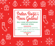 Obavještavamo vas da je VCI tim na kratkom odmoru između 24.12.2018. i 1.1.2019. te da se radnim aktivnostima vraća u srijedu, 2.1.2019.Stoga, sve koji nam se trebaju obratiti molimo za strpljenje i razumijevanje, a na poslane upite odgovarat ćemo od srijede, 2.1. Ovim putem, tim Volonterskog centra Istra želi svima ugodne blagdane te ...