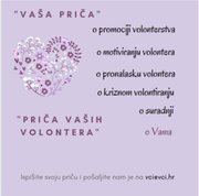 Dragi organizatori volontiranja, prihvatili smo inicijativu Hrvatskog centra za razvoj volonterstva koji sakuplja primjere dobre prakse te bismo, u cilju promocije vašeg dobrog rada, voljeli da s nama podijelite svoju kratku priču. Ispričajte nam priču iz svoje organizacije na koju ste ponosni, koju biste htjeli istaknuti, koja dobro funkcionira, koja ...