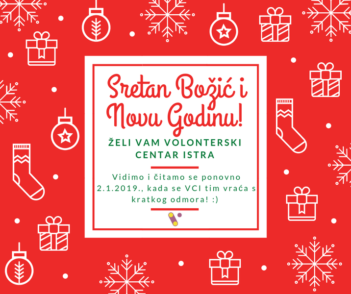 Ovim putem, tim Volonterskog centra Istra želi svima ugodne blagdane te sretan ulazak u novu, 2019., godinu, a svima kojima slave sretan Božić! :)