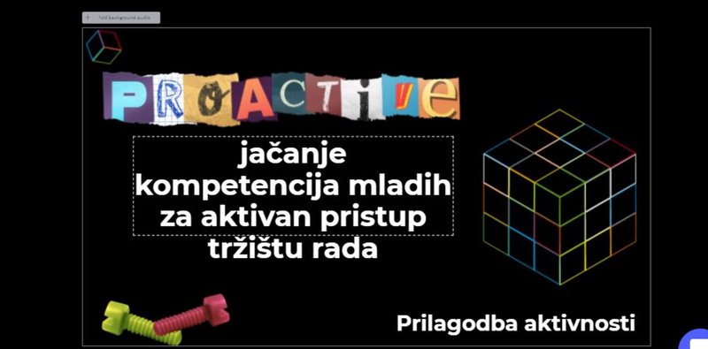 Tijekom svibnja, u nemogućnosti da održavamo planirane radionice u izravnom radu s učenicima partnerskih škola, odlučile smo se za izradu dodatnog informativnog sadržaja, prilagođenog online okruženju. Interaktivna prezentacija, izrađena u platformi Genial.ly, obuhvaća različiti tekstualni i video materijal uz poveznice na odgovarajuće izvore. U interakciji se obrađuju sadržaji koji se odnose na osvještavanje osobnih resursa, samoprocjenu kompetencija, korake izrade osobne SWOT analize, postavljanje ciljeva i koraka za njihovo ostvarivanje, proces traženja posla i izradu životopisa i motivacijskog pisma, proces pripreme za razgovor za posao kao i informacije u području poduzetništva i mogućih oblika samozapošljavanja. Kako sve to izgleda, možete provjeriti putem sljedeće poveznice: https://view.genial.ly/5ee241813122700da54b4db5/presentation-proactive-by-volonterski-centar-istra